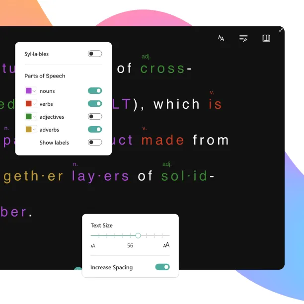 Microsoft’s Immersive Reader supports diverse learning needs by offering text-to-speech, translation into more than 50 languages, and built-in reading and comprehension tools. Automatically enabled for all text and media tags, it enables every learner to access and understand content in the way that works best for them.